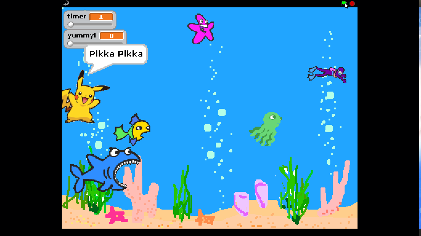 1 month before End Sem\m/ : Foss club full of energetic 1st years, all done with Linux commands and doing Bandit. Rahul sir and all the faculties are present today. ‘So somethings up for today’, and they announced we are all going to make our own game, using MIT Software Scratch, we were all excited as we will be designing our own game. We were explained the basics of the Scratch software, using algorithms and making the “Sprite” (the character, eg. the fishes and objects in the image above) do many things.